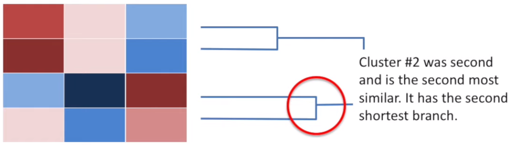 And it goes on and on until we end up with one giant cluster. Note that there are several approaches to compare the distance metric between clusters: