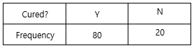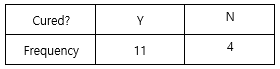 $X \sim B(n, p)$ where $X$ denotes #cured, $n$ is 15, and $p$ is 0.9. Note that since $nq<5$, we cannot use the normal distribution to approximate it. So, according to the drug company, $X$ should follow $X \sim B(15, 0.9)$.