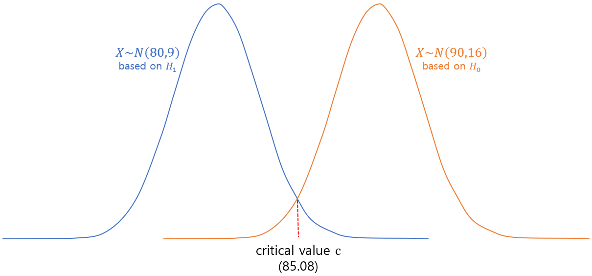 Finally, $P(Type \: 2 \: error) = \beta = P(X \ge 85.08) = 0.102$ where $X \sim N(80, 16)$.