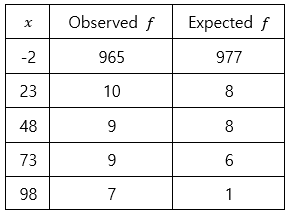 where $O$ and $E$ denote observed and expected, respectively. This $X^2$ gives a way of measuring the difference between the frequencies we observe and expect.