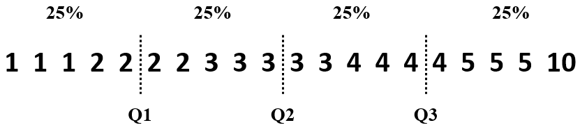 Example to further explain the quartiles where Q1, Q2, and Q3 stand for first, second, and third quartiles, where Q2 is the same as the median, and Q1 and Q3 are also called lower and upper quartiles.