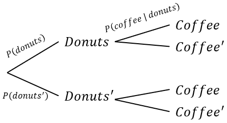 Probability Tree. Note that the probability for each set of branches must add up to 1. The first set of branches shows the probability of each outcome. The second set of branches shows the probability f outcomes given the outcomes of the branch it is liked to. Each set of branches must add up to1.