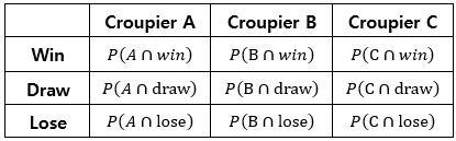 Solution: We can figure it out by testing whether the outcome of the game is dependent on which croupier is leading the game.