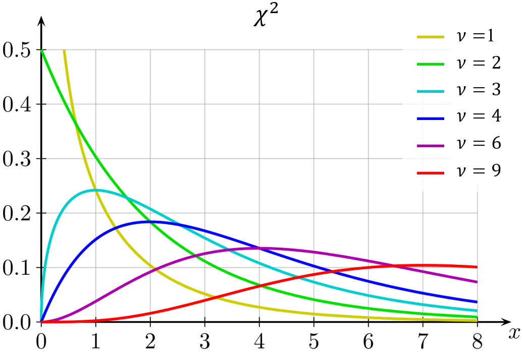 $\chi^2$ distribution with different $\nu$ We set a significance level $\alpha$ (e.g. 5%), then,