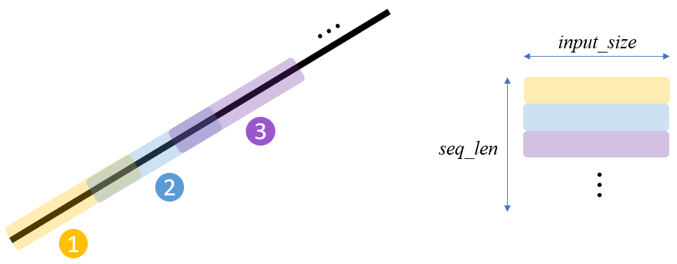 By fetching this stacked data over the batch dimension via DataLoder, we can obtain a training dataset for LSTM. Note that different linear gradients are used to stack along the batch dimension.