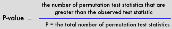 - Compute $p-value$ which is the probability of getting the permutation test statistic same as the observed test statistic or more extreme if the null hypothesis is true.